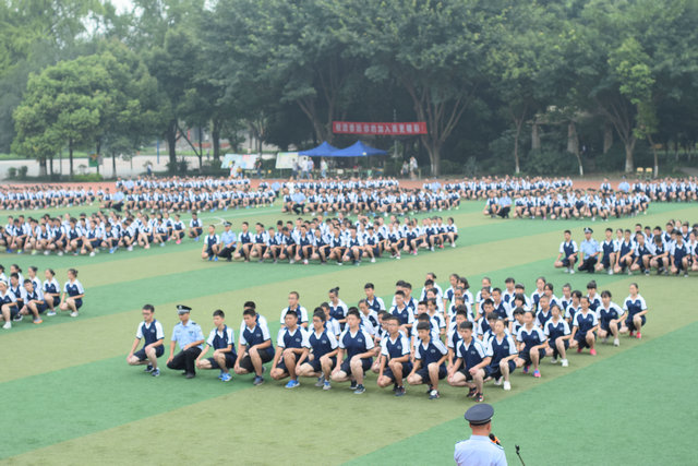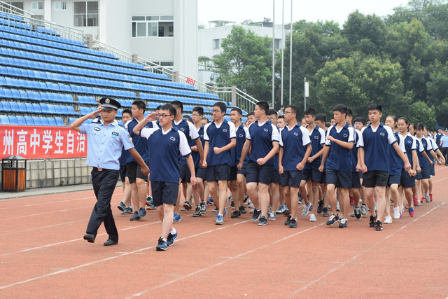 8月29日上午,在泸州高中运动场举行了应急疏散演练和2015年新生国防教育总结大会,泸州高中校长李渝江等学校领导和出席了此次活动。李渝江校长检阅了本次新生军训的40个方队。随后各方队分别进行了分列式表演和队列训练表演。同学们英姿飒爽、精神抖擞,动作整齐划一,以高昂的热情向领导们展示了他们军训的丰硕成果。