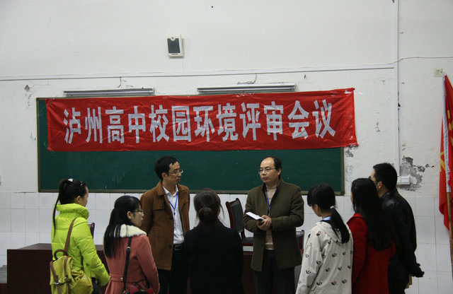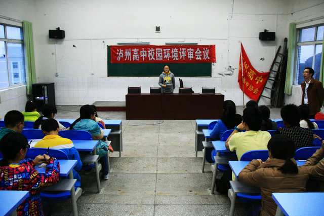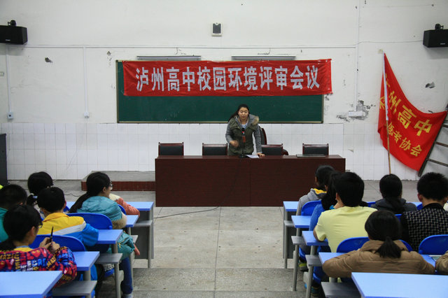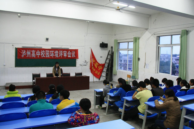11月26日,泸州高中学生环保志愿者聚集会议厅,交流汇报近期调查校园环境及校园环保的情况,并对今后环保工作提出建议。这是泸高创建国际生态学校的一次重要活动。学校领导罗德强和有关老师出席会议作指导。