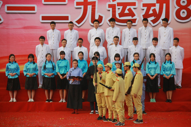 12月8至9日,泸州高中7000多名师生员分班级、分团体举办文艺汇演,隆重纪念“12.9”运动80周年和抗日战争胜利70周年。文艺节目的内容丰富,形式多样,表演精彩,感染力强。许多师生表示,观看汇演让人深受鼓舞和教育,让人牢记历史,不忘国耻;在新时期和新的形势下开展这样的纪念活动,有利于弘扬爱国主义精神,践行社会主义核心价值观;能激发人爱祖国、爱家乡、爱学校,催人奋进的激情。(古邦伦)