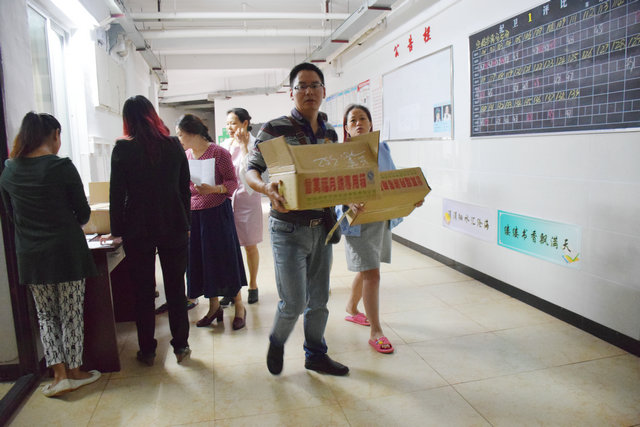 9月15日,正值中秋佳节,天下着蒙蒙细雨,微风中透着丝丝凉意。一大早,陶校长、杨亮主任、温世娟主任就来到学校与寝管中心三位老师一起到各公寓为我校“中秋节”没能回家的住校生分发月饼。 当生活老师将一个个小小的月饼发到学生手中时,同学们个个笑逐颜开,心里乐滋滋的,嘴里不停地说着:“谢谢,谢谢!”感动之情溢于言表,月饼虽小,却让他们体会到了来自学校领导和老师的关爱。“每逢佳节倍思亲”他们虽然没能回家与家人团聚,但仍感受到了浓浓的节日气氛和家庭的温馨。泸州高中多年来坚持为中秋节留校生发放月饼,通过这一个个月饼,传递着学校对学生的关爱。(寝管中心)