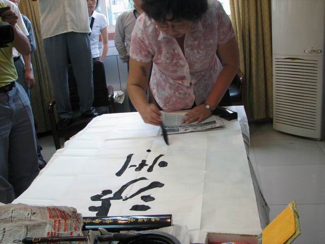 郭庶英女士在市委宣传部有关同志的陪同下专门到泸州高中参观。曾在中科院工作的杨壮伯老师向郭庶英女士介绍了联系中国科学院院长郭沫若的秘书,请郭沫若亲笔为该校书写校名“泸州高中”的整个过程,郭大姐听后显得很激动,又一次打开话匣子,谈起了父亲郭沫若的很多故事来,并对父亲的一生作了总结:父亲是学医的,但涉足面较广。他把自然与社会相结合;外国文学与中国文学相结合;古代文学与现代文学相结合,与他涉足面较广有很大的关系。父亲的一生很不容易,无时无刻都在勤奋用功。座谈会结束,郭大姐在热烈的掌声中为泸州高中挥毫题写了“泸州高中好学校”,让在场的人好生激动。
