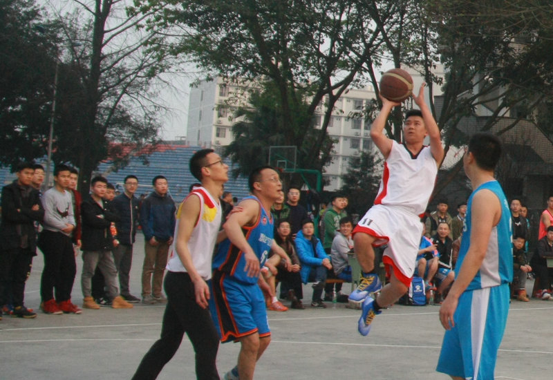 日,泸州高中工会、泸州外国语学校工会各自组队在泸高篮球场举行友谊赛。双方队员在增进友谊,发扬文明风范的同时,比赛异常激烈,赢得场外观众的阵阵掌声和呐喊声。(古邦伦)