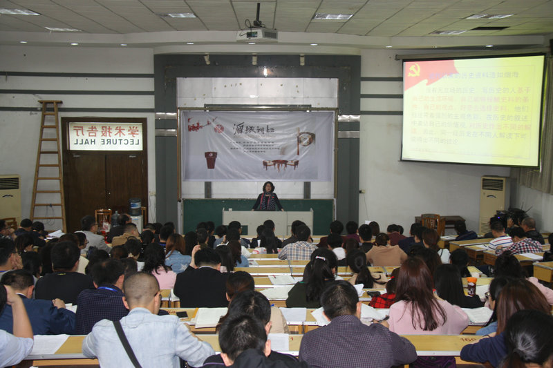 4月24日,市委党校教授、“酒城讲坛”讲师舒榕,在泸州高中党史宣讲党员工作室和樟林讲坛的约请下,以“中国共产党95年光辉历程”为题,向泸高200多名党员干部宣讲党的历史。