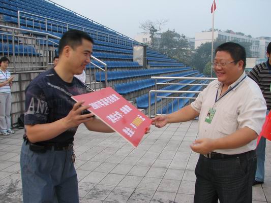 9月24日朝会上,肖校长为在07年高考中取得优异成绩的学生和在联考中取得优异成绩的学生颁奖。其中在07年高考中取得四川省文科第一名,泸州市文科状元,被北京大学录取的金毅同学和被清华大学录取的宋馥璇同学分获奖学金10000元。