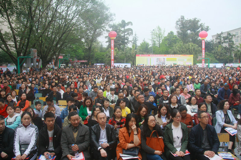 4月1日,泸州高中繁花似景,4个相连的运动场上坐满了来自四面八方的初三学生及其家长,据估计大约有2000余人,他们都是来参加泸高招生恳谈会的。