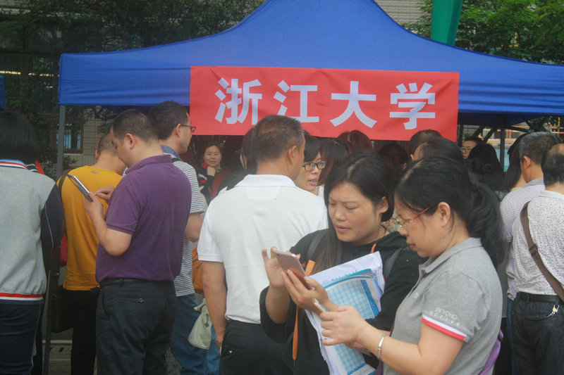 5月5日,浙江大学、中山大学等全国30多所高校到泸州高中展览台,向来自全市的学生和家长宣传招生政策,回答提出的问题。