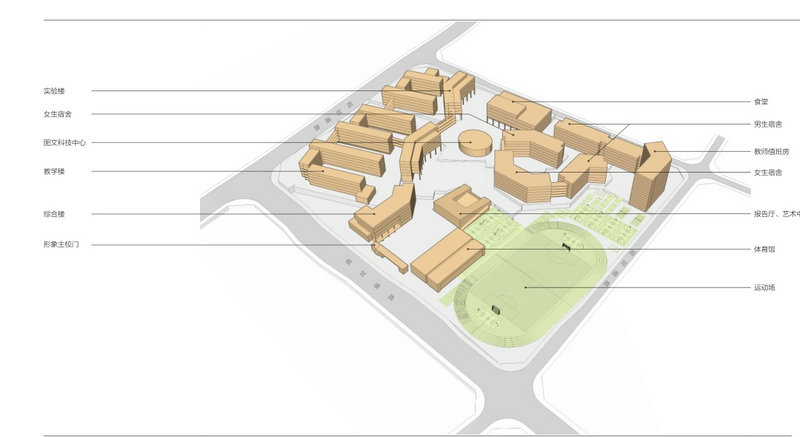 泸州高中城西校区食堂、教学楼(6幢)、学生公寓(5幢)、教师值班公寓、艺术中心、图文科技中心、实验楼、综合楼、体育馆共计18幢建筑物的命名。如下图所示: