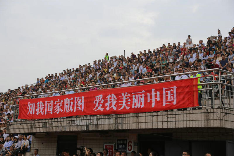 随后,约2000名学生身着统一服装,在学校体育场排列成“中国”两个字样的方队,举行了隆重的升旗仪式。升旗礼毕,学校有关领导向师生进行国家版图意识主题宣讲,强调国家版图是一个国家行使主权和管辖权的疆域,体现了国家在主权方面的意志和在国际社会中的政治、外交立场,同国旗、国徽、国歌一样,是国家的象征。方队镶嵌有五星红旗、国家版图图案,活动在学生气势磅礴的“知我国家版图,爱我美丽中国”呼号声中达到高潮。