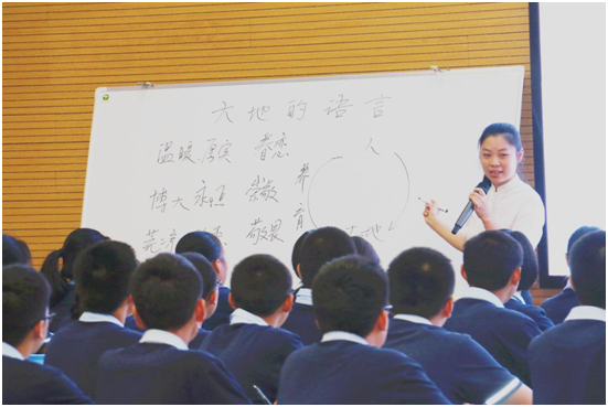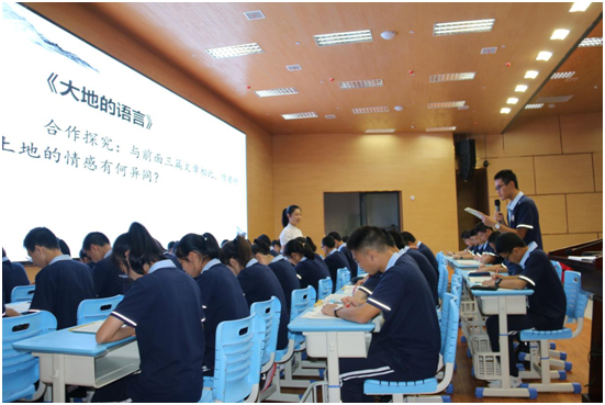 教学研讨会首先由四川省2019年高中群文阅读展评一等奖执教教师刘丽娜带来阅读优秀课例展示,上课课题为《大音自成曲,但奏无弦音——聆听大地的语言》,上课班级为泸州高中(城西校区)高一10班。