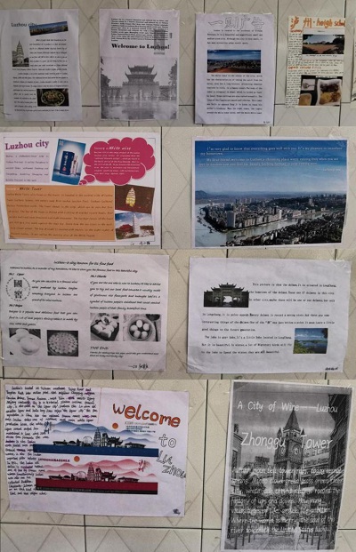 笔者通过与该班英语老师陈英交流得知,近期,英语课讲到欧洲的著名城市的历史、文化、建筑等相关知识,为了更好地激发同学们爱祖国、爱家乡的热情,陈老师要求同学们用英文手抄报的形式宣传介绍自己的城市,并尝试为自己的城市撰写宣传语。活动中,同学们广泛搜集泸州的著名景点资料,从不同的角度,用英文再现泸州的历史文化和风土人情。通过活动,进一步加深了同学们对自己生活的城市的了解和热爱,也增强了同学们作为一名泸州人的自豪感和幸福感。(张承曦)