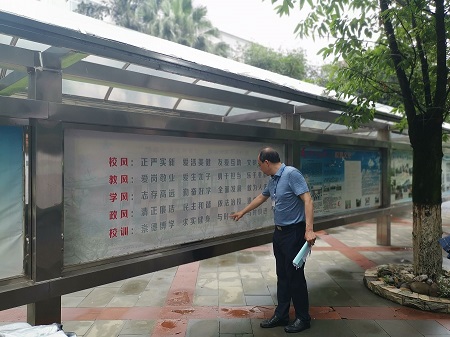 6月12日上午,学校纪委书记罗德强率办公室、德育科、教务科、总务处、体艺综合科、校团委等相关科室负责人,对校园文化、校园环境、活动阵地等育人环境建设进行自查整改。