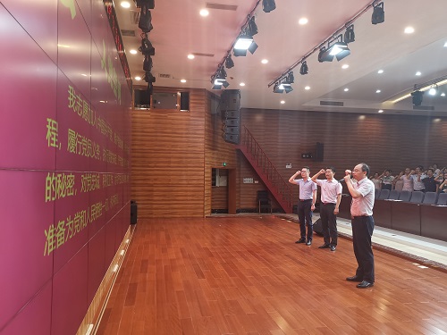 随后学校党委委员、纪委书记罗德强带领预备党员宣誓及全体党员重温入党誓词。