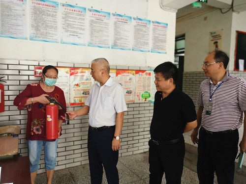 2020年8月31日 ,市教育和体育局党组书记、局长黄月桂率领相关科室同志到泸州高中督查文明城市建设和开学准备工作。黄局长一行查看了校园环境卫生整治情况,进入门卫室检查消防设备设施是否齐备,是否存放有快递和餐具等。检查学生公寓时,还抽考生活管理老师怎样正确使用灭火器。检查教室时,特地询问泸州高中暑期更换环保节能电灯情况。此外,督查组还随机抽取两组学生回答文明城市建设应知应会知识。黄局长充分肯定学校文明城市建设工作,在陈旧宣传广告更换等方面提出整改建议。学校党委书记、校长李渝江,副校长陈去超,纪委书记罗德强,副校长洪波等陪同督查。