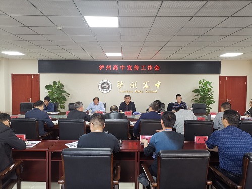 11月13日下午,泸州高中在致知楼三楼会议室召开宣传工作会议,学校领导班子及中层干部参加会议。纪委书记罗德强在会上传达了市教育和体育局宣传会议精神,提出要高度重视宣传工作。党委书记、校长陈云超作强调,要进一步明确责任,加强宣传。