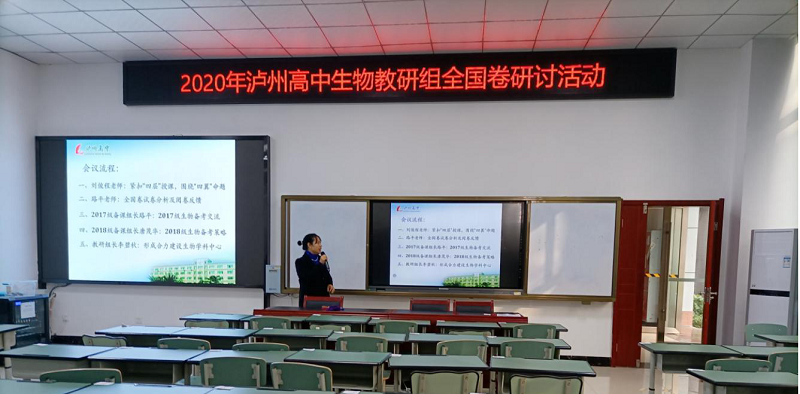 坚持目标导向才能少走弯路,精细落实双核培养才能事半功倍。在新旧高考转型的关键时期,泸州高中生物组按照学校的总体安排部署于2020年11月9日专门针对高考试题开展了主题教研活动。本次活动由教研组长李碧秋老师主持,生物组全体教师参加。活动议程:一是刘俊程老师:紧扣“四层”授课,围绕“四翼”命题;二是路平老师:全国卷试卷分析及阅卷反馈;三是2017级备课组长路平老师:2017级生物备考交流;四是2018级备课组长唐茂华:分享2018级生物备考策略;五是教研组长李碧秋:形成合力建设生物学科中心。活动在李碧秋组长的主持下拉开帷幕。