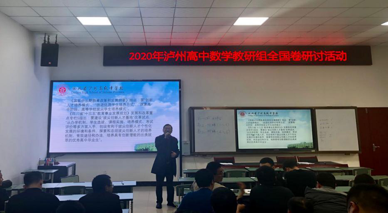 为准确领悟改革背景下的高考数学命题思想,进一步把握高考数学命题趋势、学习备考方略、分享备考经验、提高备考能力,推动我校数学教学和备考工作上台阶、提水平。按照学校工作安排,数学教研组于2020年11月9日组织召开了“泸州高中‘一校两区’集中教研系列活动之数学教研组全国卷专题研讨会。”