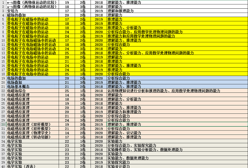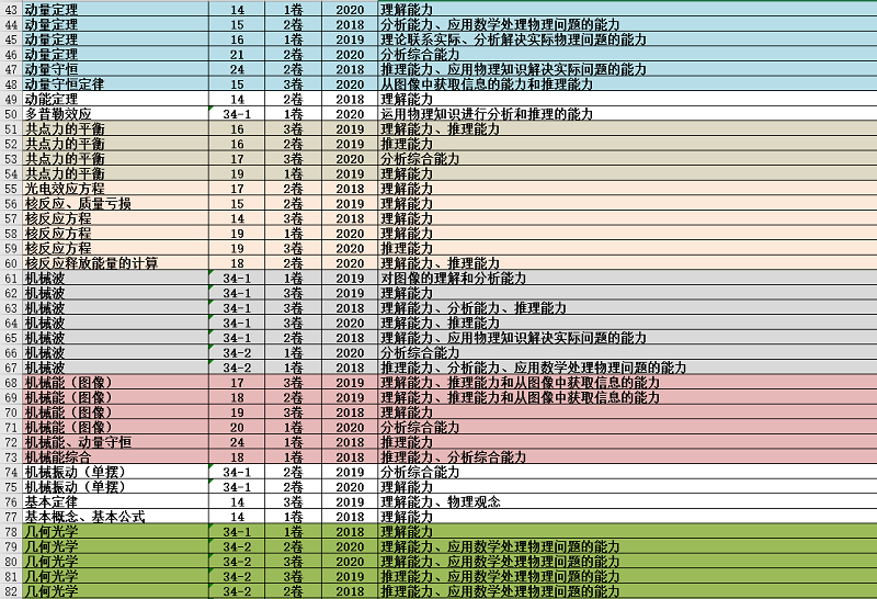 历年高考卷各板块内容的比例不稳定,选择题设问单一,四个选项都考一个知识点,此外全国卷出题“神出鬼没、难以捉摸、非常任性”,但仍“有料”可挖。邓老师以 Excel 表格的形式呈现了全国卷命题的特征,以下简要列出