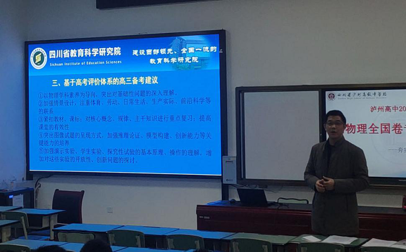 11 月 3 日上午,泸州高中 2020 年秋期物理全国卷主题研讨会在忠山校区召开,全体物理教研组成员参加研讨,泸州高中校长陈云超参与指导。