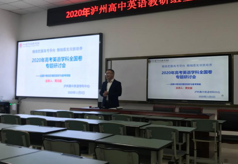 2020年11月5日,泸州高中英语学科中心根据学校工作部署,在致知楼108公开课教室举行了“2020年泸州高中英语学科全国卷研讨会”。全体教研组教师参加了学习研讨。