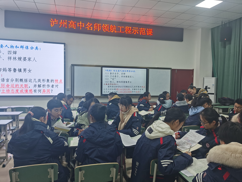 12月9日下午,泸州高中名师领航工程示范课在忠山校区致知楼108教室进行,本次课堂由语文组梁梅老师执教,语文教研组组长蒲尚文老师主持研讨,语文教研组全体成员参与听课、评课。