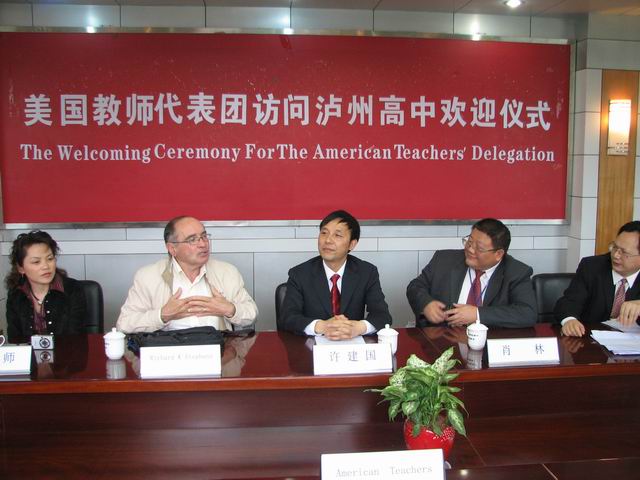 欢迎仪式上,市教育局副局长许建国代表泸州市教育局致欢迎辞,对美国教师们表示热烈欢迎。他指出,中美两国人民之间的教育交流,有助于我们相互学习,取长补短;有助于我们共同为两国教育的发展,为人类的文明进步作出贡献。