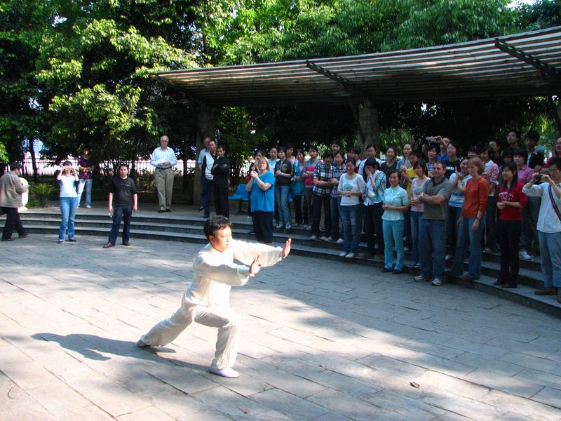 从4月14日到18日,美国教师访问团在泸州高中进行了为期一周的自费访问交流。他们每天上午走进课堂,为同学们上课,下午则培训泸高的英语教师。在上课培训之余,他们还学习武术,学习中国画和书法,游览张坝桂圆林,参观滨江路和泸州老窖国窖窖池,与泸高师生联欢,进入教师家庭作客,零距离体验了中国的文化。问到他们对泸高师生的感受,他们说得最多的是:“Very good !”访问团团长理查德先生说,他先后访问了全世界40多个学校,泸州高中无论是学校管理还是校园环境、校园文化,无论是待人的热情善良还是师生的素质,都堪称第一。
