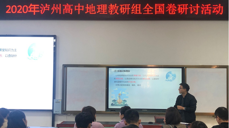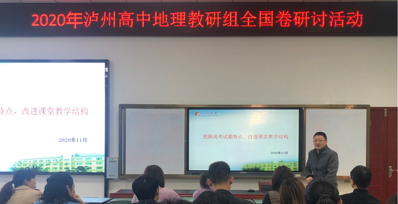 在新高考改革落地的关键时期,打造行之有效的教学策略是当务之急,为提高地理教学的有效性,11月13日下午,泸州高中全体地理老师在忠山校区致知楼108教室开展全国卷研讨活动,本次活动由地理组教研组长吴子银老师主持。泸州高中校长陈云超参与指导,并在活动前对地理组提出两点希望,一是夯实基础,教师自身的学科基础知识一定要过硬;二是注意反思,课后反思能推动教师专业素质的持续发展。