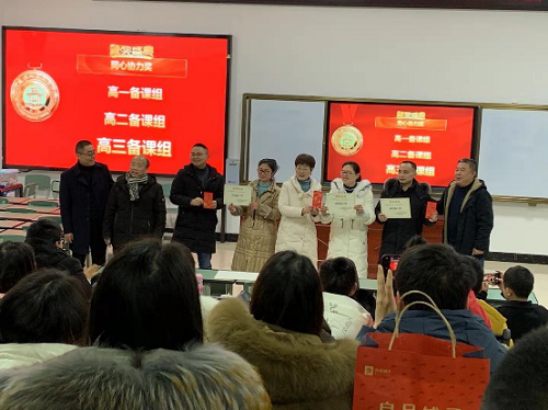 最后,在王辉老师的主持下,对一年来取得突出成绩的备课组及陈薪宇老师的指导团队进行了表彰。