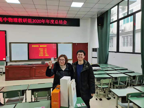 大会第五项,教研组工作总结。泸州高中物理教研组长赵希林老师对本年度的工作进行了多角度总结。首先,展示了2020年三个年级备课组的学科战绩,进行了各项工作回顾。与此同时,针对教研组存在的问题进行反思,展望未来。高峰主任就专项名师工作室相关事宜向大家做了相应的宣传。最后的欢乐时光环节,带给大家惊喜,引爆全场气氛。
