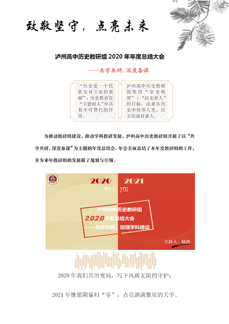 致敬坚守 点亮未来--泸州高中历史教研组2020年年度总结大会