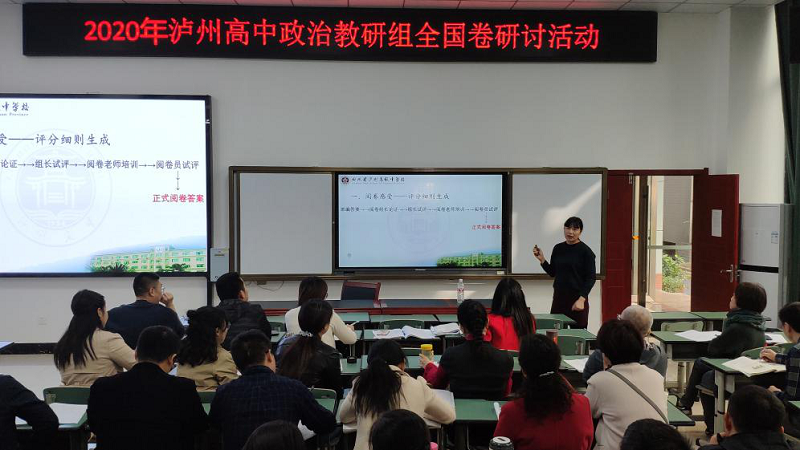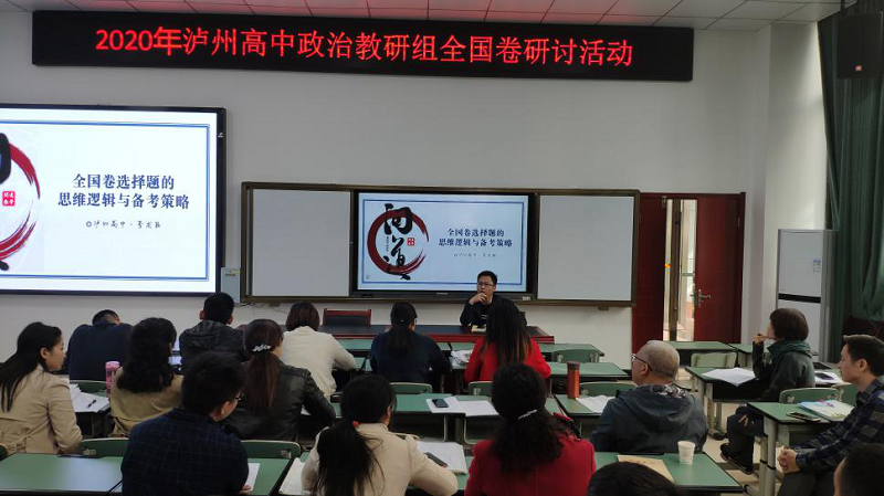 2020年11月19日,泸州高中政治学科中心根据学校工作部署,在泸州高中忠山校区致知楼108教室举行了“2020年泸州高中政治学科全国卷研讨会”。全体教研组教师参加了本次研讨。泸州高中政治教研组组长——邓雪梅主持了本次研讨活动。