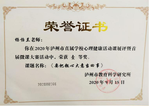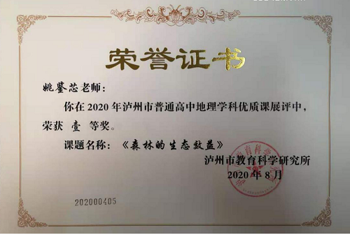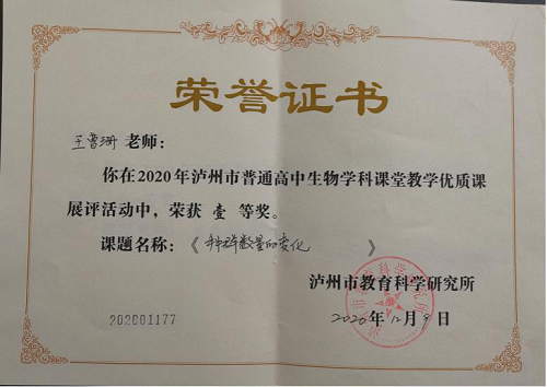 积时累月磨课堂,同台竞技满载归。近日获悉,泸州高中教师在2020年普通高中优质课展评活动中取得1个四川省一等奖、5个泸州市一等奖、2个泸州市二等奖的佳绩,载誉而归。