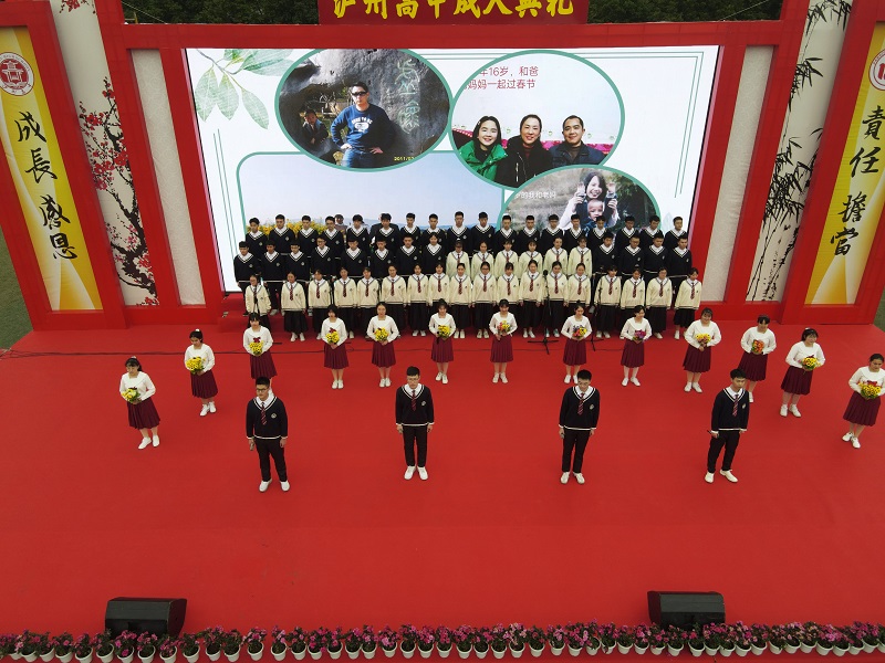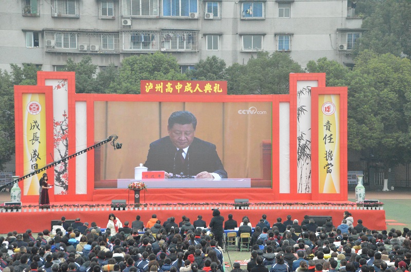 长沱两江水,桃李竞芬芳。2021年1月2日下午,泸州高中忠山校区隆重举行以“十八而志,青春万岁”为主题,以“成长、励志、责任、担当”为思想引领的高2018级成人仪式。全年级学生、家长共6000余人参加了这一仪式,泸州市检察院党委委员、副院长胡运汉,第七检查部主任王德虹,团市委宣传部部长谢宇,以及泸州高中全体校级领导与中层干部等一起见证了这一庄严而又神圣的时刻。