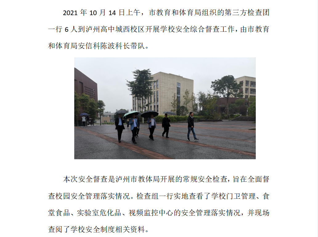 开展校园安全检查 筑牢校园安全防线——泸州市教育和体育局到泸州高中城西校区进行学校安全综合督查