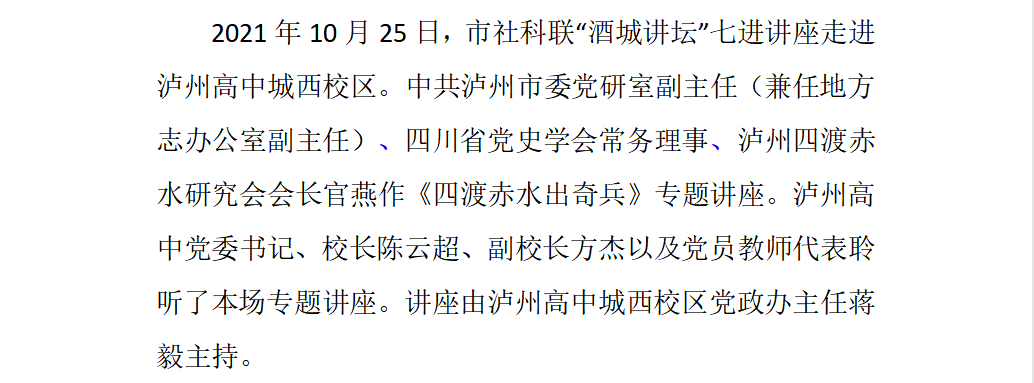 汲取党史力量 厚植爱国情怀|泸州高中城西校区举行党史专题讲座