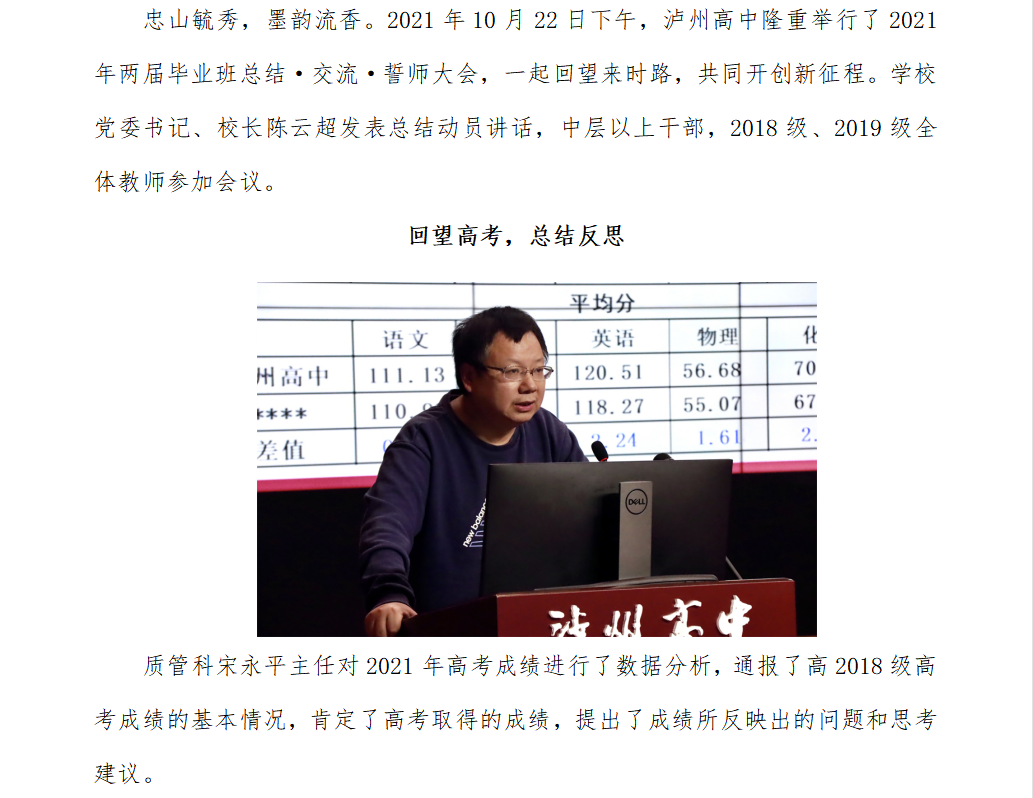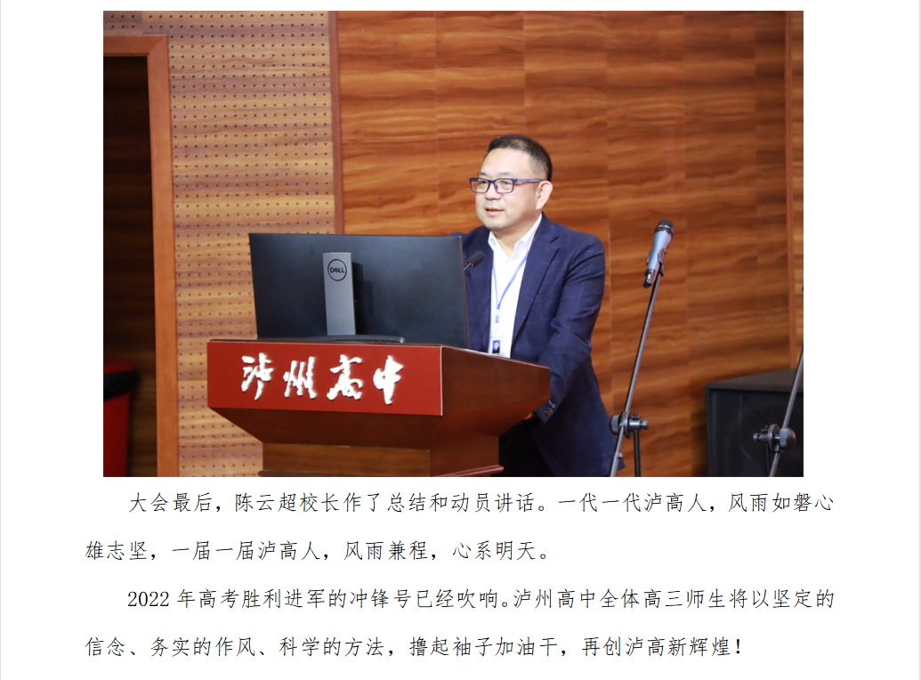 薪火相传,再攀高峰——泸州高中2021年两届毕业班总结·交流·誓师大会召开