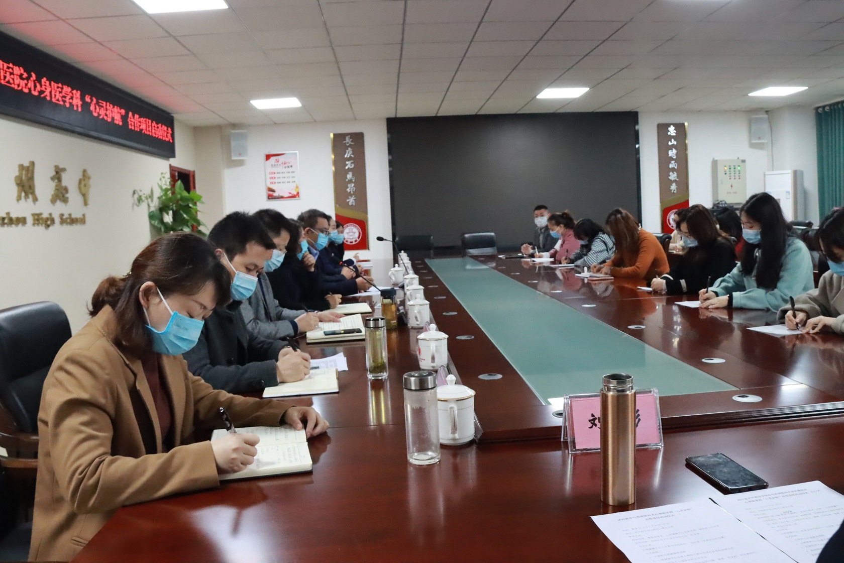 泸州高中高度重视心理健康教育,积极贯彻落实《四川省教育厅关于认真做好全省中小学生心理筛查与预警工作的通知》的工作要求,为扎实开展学校各项心理健康教育工作,培养学生良好的心理素质,促进全体学生的心理健康和全面素质的提高,为学生终生发展奠定基础,近日,四川泸州高级中学校与西南医科大学心身医学科“心海护航”项目合作方案在致知楼行政会议室正式启动。