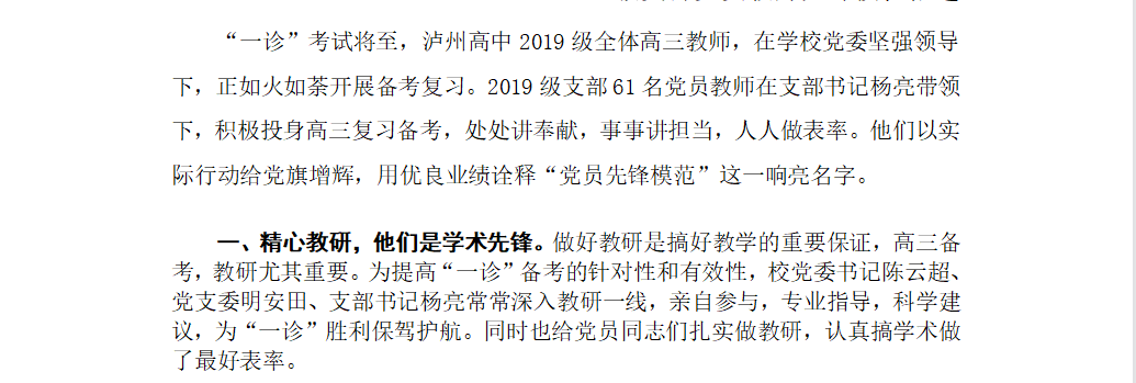 备考“一诊”创佳绩,立德树人争先锋|2019级支部党员教师先锋模范报道