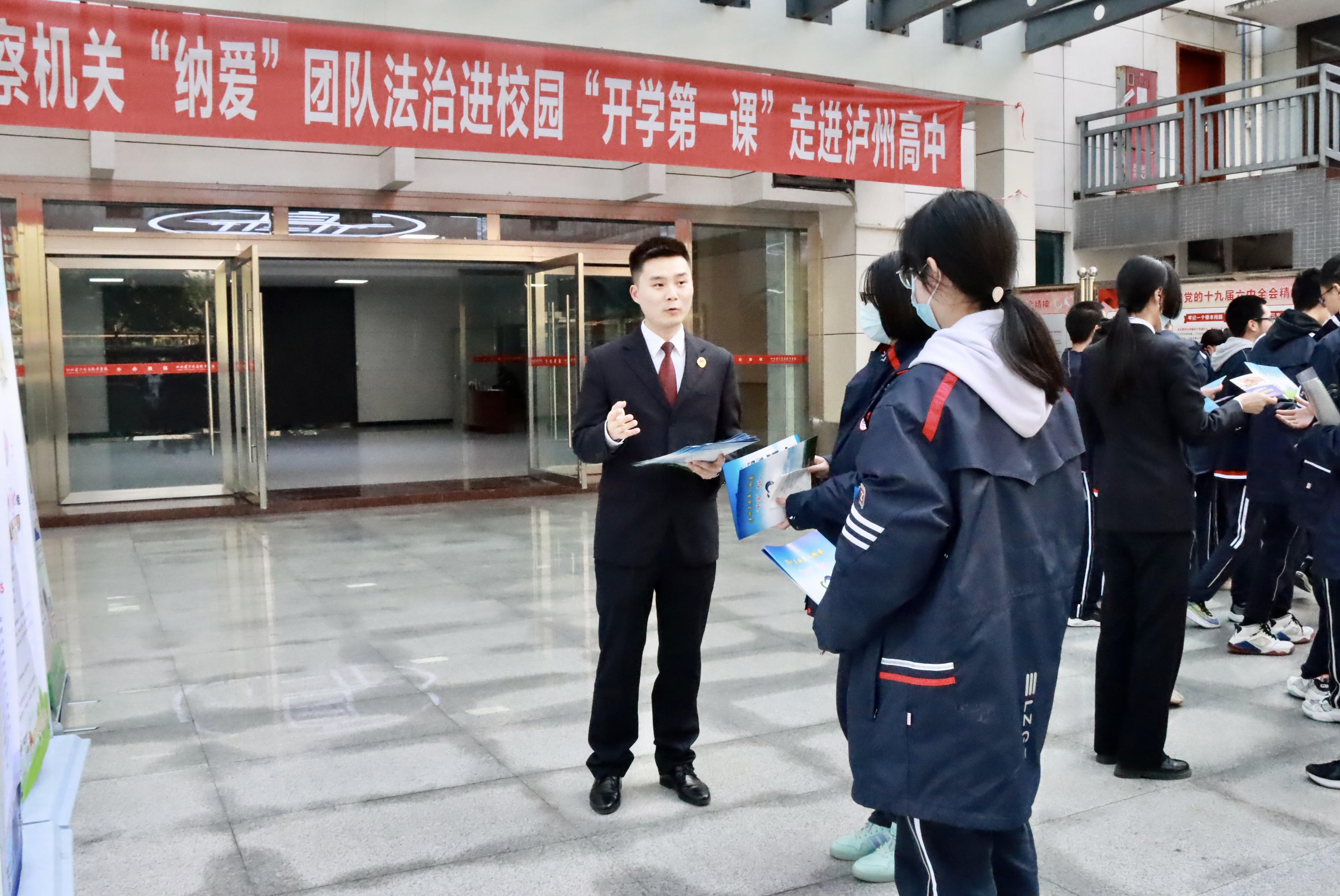 泸州市人民检察院工作人员向我校学生分发法治宣传读本和资料。