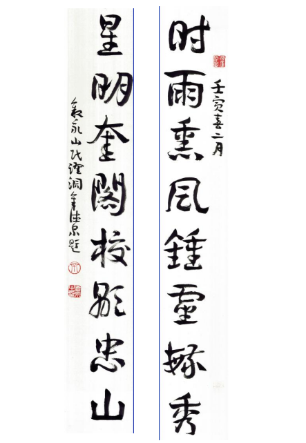 ▲余德泉题联:时雨熏风,钟灵毓秀;星明奎阁,校显忠山。