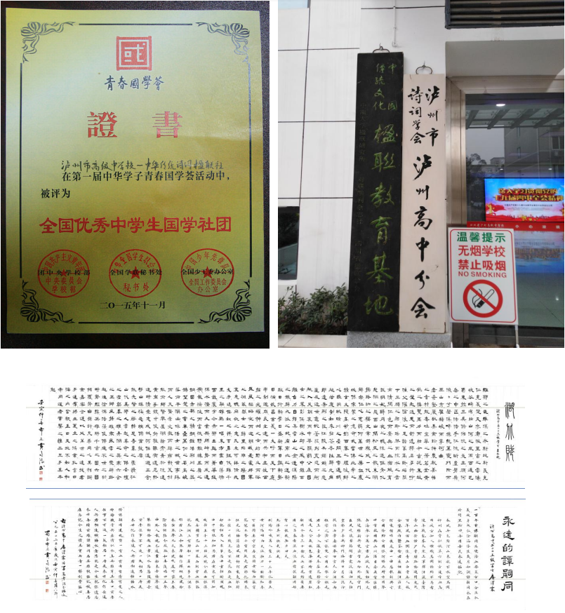为落实立德树人、五育并举,迎接建校70周年大庆,学校总结并凝炼了以诗词楹联教育为主要特色的泸高文化,成立诗词楹联学院并建成诗词楹联长廊。