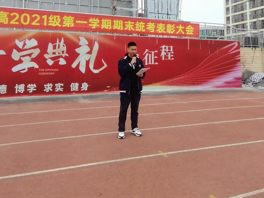 2022年2月25日,泸州高中城西校区高2021级第一学期期末统考表彰大会在运动场召开。高一年级领导、全体班主任及学生参加了本次大会,会议由年级部长熊允主持。