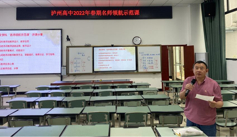 2022年4月27日星期三上午,泸州高中语文教研组高一、高二、高三年级全体语文老师在忠山校区致知楼108教室参加泸州高中2022年春期名师领航示范课。