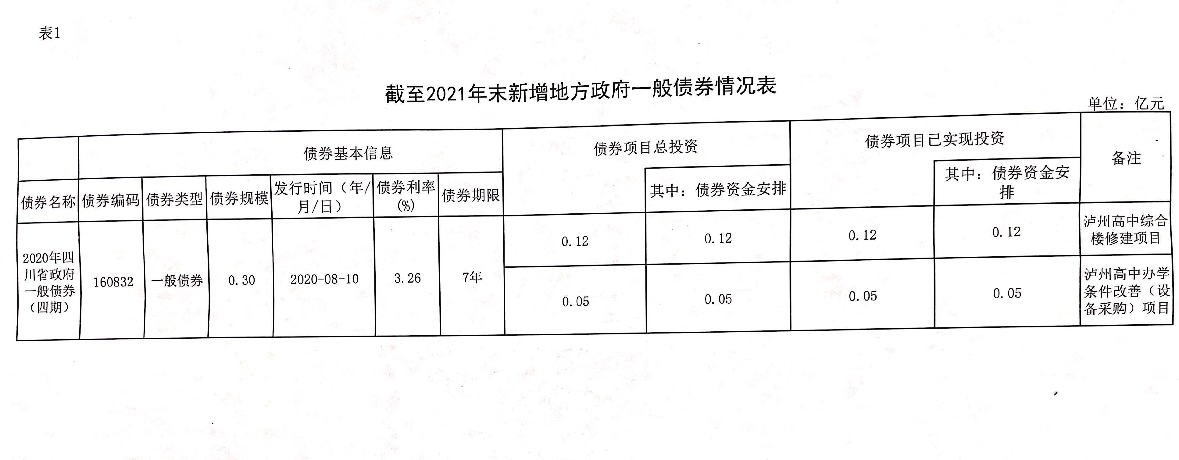 泸州高中截至2021年末新增地方政府一般债务情况表