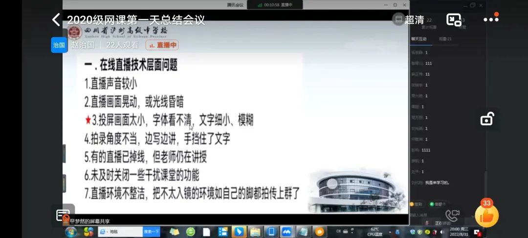 疫情就是命令,防控就是责任。泸州高中高二、高三年级组积极响应,召开线上教学工作会,精心筹划,9月1日开学当天早上8:30准时开展线上教学课程。