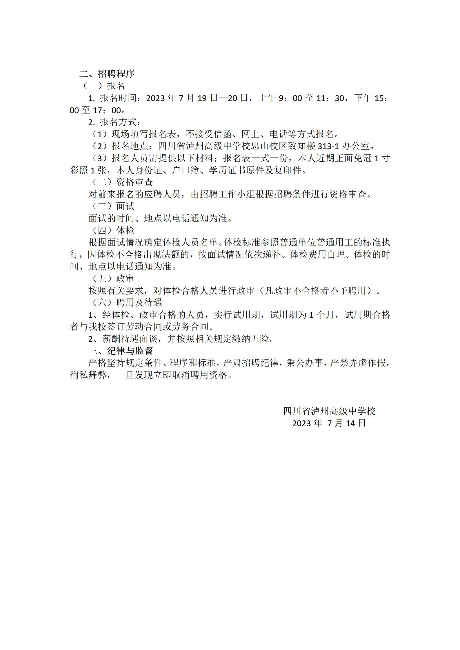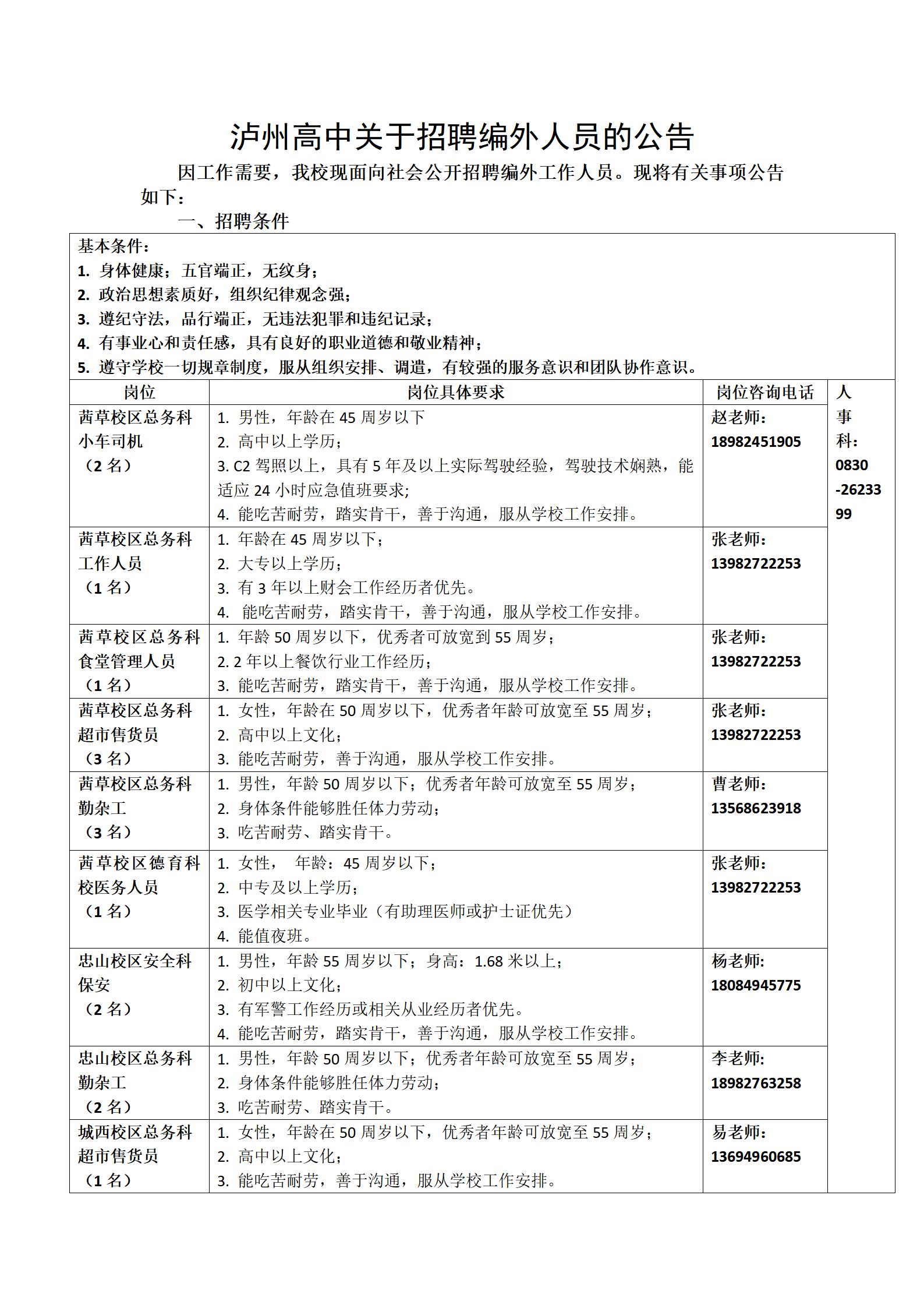 泸州高中关于招聘编外人员的公告