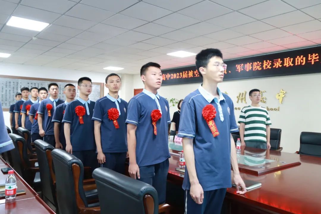 刘彬宣读了泸州高中《关于表扬2023届军队院校录取毕业生的决定》,对廖博坤等35名被军队院校录取的2023届毕业生予以表扬。刘彬希望他们继承和发扬泸高人忠勇报国的优良传统,成长为泸高学子从军报国的表率。