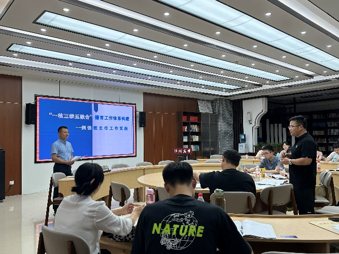 城西校区德育科科长翟晓根,从“一核三维五融合”德育工作体系构建出发,结合自身多年班主任经验和年级组长经历,对新教师展开班主任实务培训。