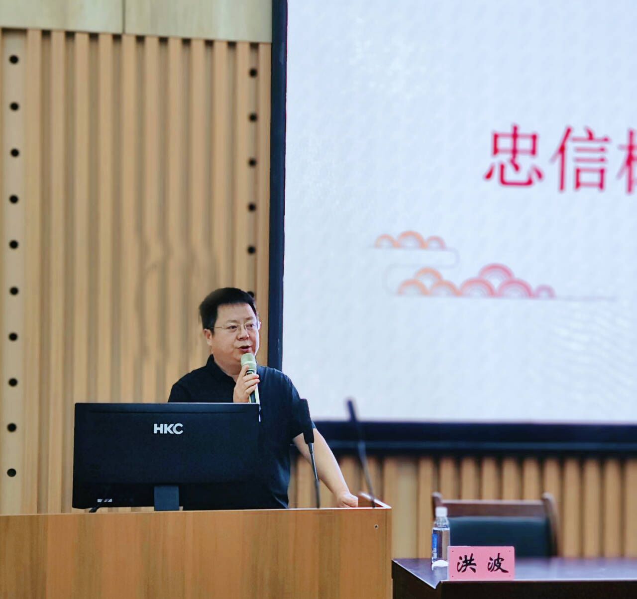 泸州高中副校长洪波做了题为《忠信树人,勇毅育才》的专题讲座,分别从办学理念、校训、校风、教风、学风向老师们介绍泸州高中“忠勇文化”,并提出教师们要明大德、守公德、严私德,以坚韧不拔的毅力去磨练本领、攻坚克难,以“忠勇文化”教育引导学生坚定理想信念,厚植爱国主义情怀。
