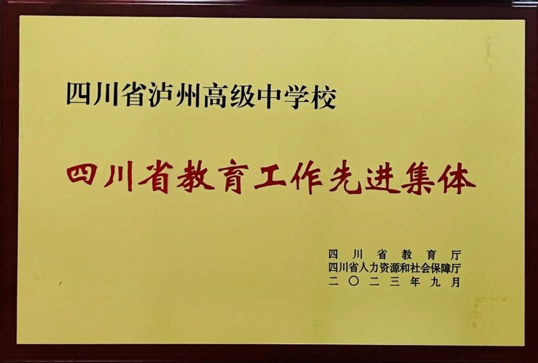 近日,泸州高中被四川省教育厅、四川省人力资源和社会保障厅授予为四川省教育工作先进集体。在市委、市政府的关怀领导下,泸州高中全体教职员工戮力同心,取得了令人振奋的佳绩。